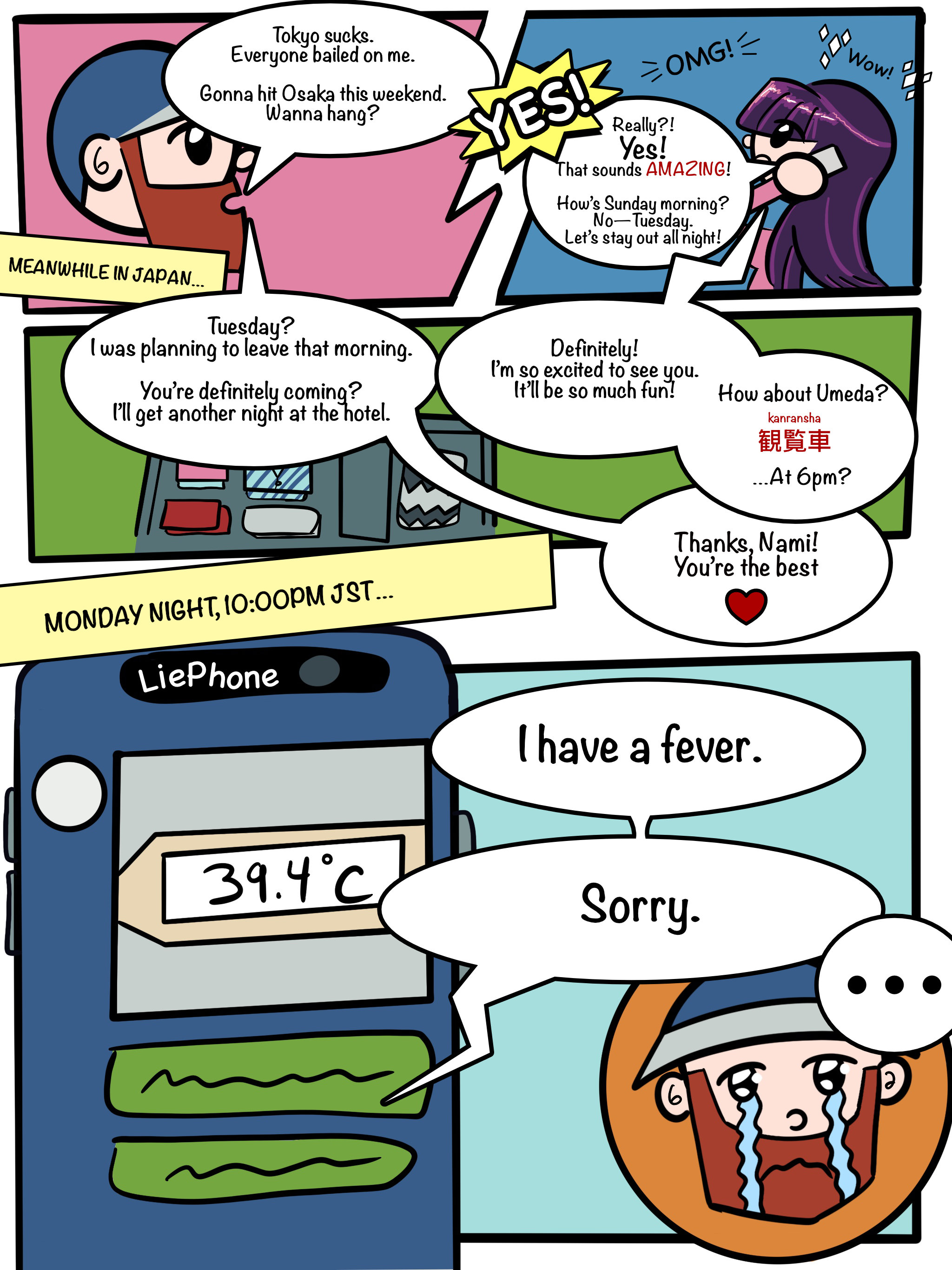 After making plans over the phone with a friend and taking the train all the way back to Osaka to meet her, my friend cancelled on me again and ghosted me, which is exactly what she did to me in the previous year.